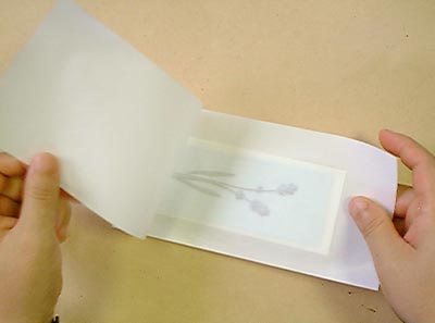 6:充分冷ませた後、フィルムに挟まれた作品を取り出します。